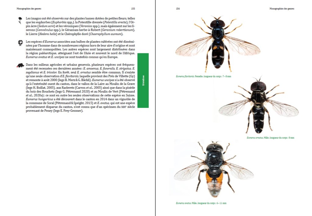 Avec 228 espèces recensées à la date de cet ouvrage, le canton de Genève, qui occupe moins d’un pourcent de la surface de la Suisse, héberge près de la moitié des espèces de syrphes connues dans le pays. Elles sont ici présentées sous une forme accessible à un public large et illustrées pour plus de la moitié d’entre elles. Cette première monographie consacrée à ce groupe en Suisse fournit des informations sur la biologie, l’habitat et la distribution des syrphes, mais aussi sur les techniques d’observation et les informations que ces insectes peuvent fournir. En bref, l’objectif est de permettre aux lectrices et aux lecteurs de porter un nouveau regard sur les « mouches » et la nature qui les entoure.